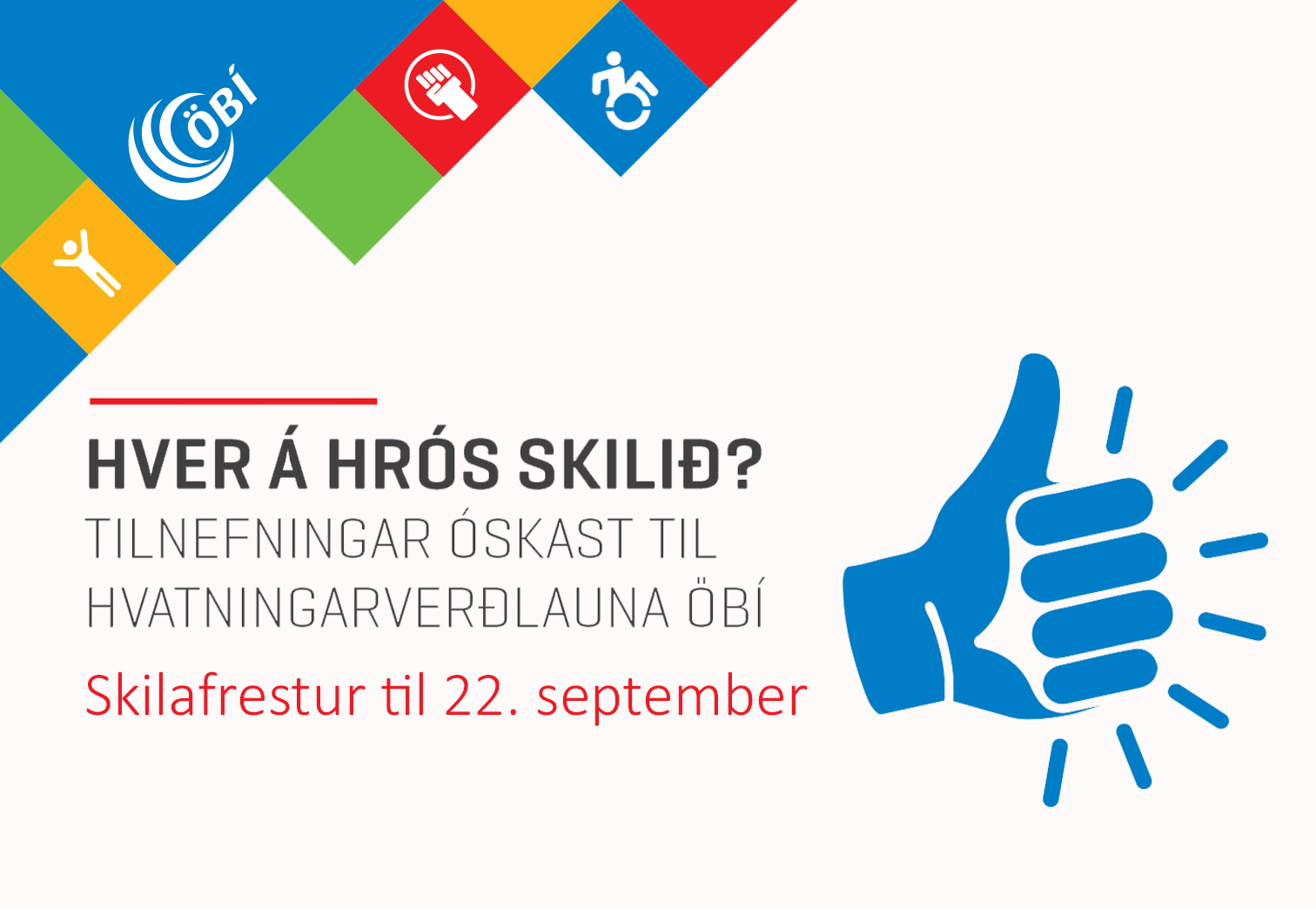 Frestur til að tilnefna til Hvatningarverðlauna ÖBÍ hefur verið framlengdur til laugardagsins 22. september.