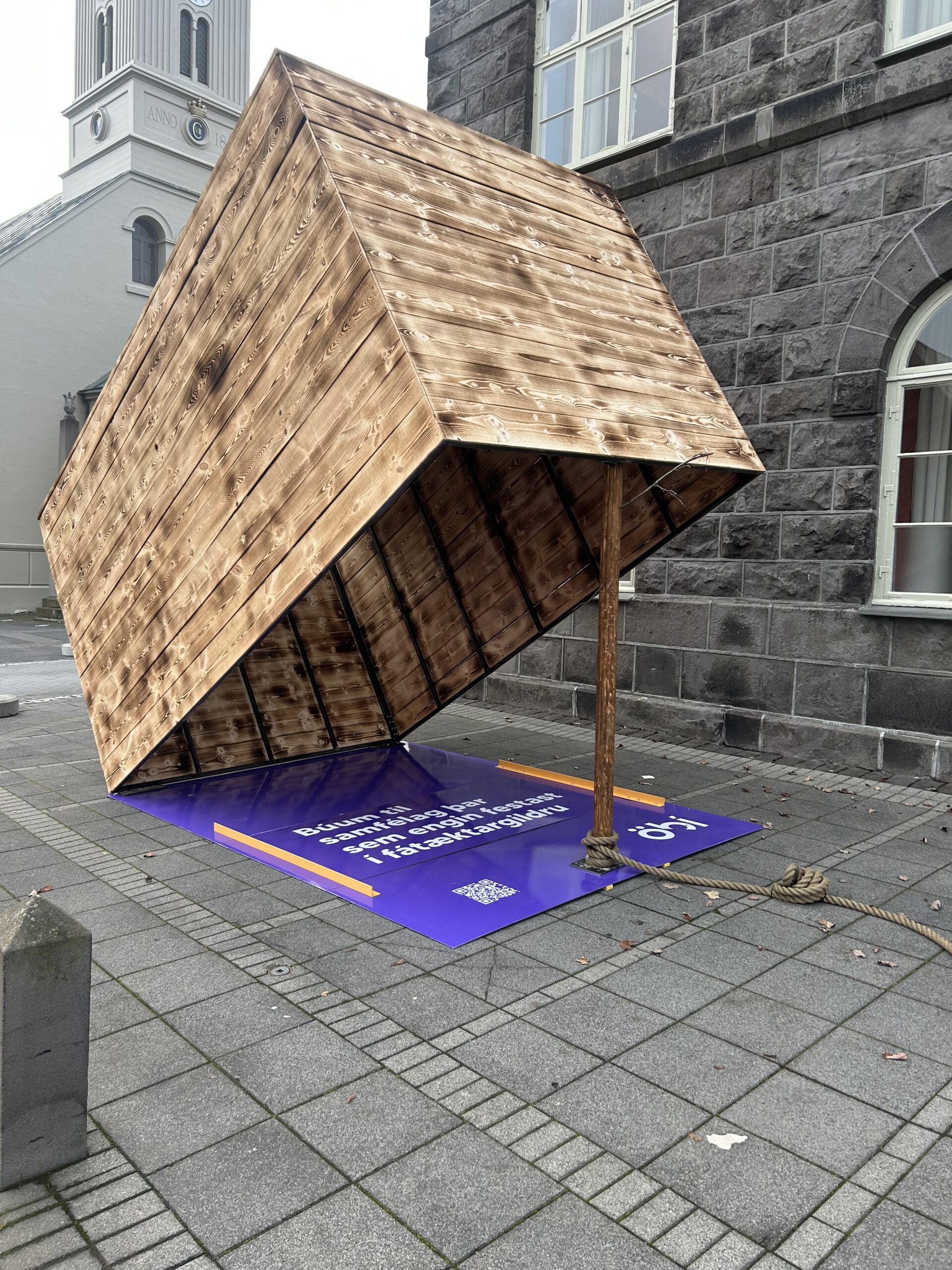 ÖBÍ réttindasamtök settu upp táknræna fátæktargildru við Alþingishúsið í Reykjavík í gær, á alþjóðlegum baráttudegi gegn fátækt, til þess að vekja athygli á stöðu þeirra þúsunda sem búa við fátækt á Íslandi. Gjörningurinn var gerður í samstarfi við Brandenburg.
