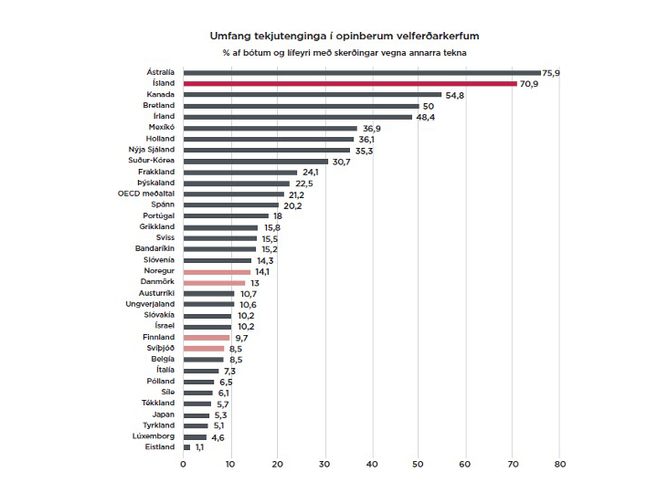 Með óvenjulega harkalegum skerðingum skera Íslendingar sig talsvert frá hinum Norðurlandaþjóðunum og líkist íslenska velferðarkerfið fremur engilsaxneskum velferðarkerfum en þeim norrænu hvað þetta varðar.