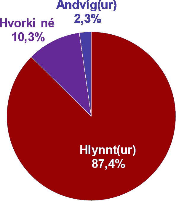 29,1% svarenda eru því alfarið hlynnt, 29,7 mjög hlynnt og 25,7 frekar hlynnt. Samantekið eru það því 84,5% svarenda sem eru því hlynnt á einhvern hátt. Aðeins 3,3% svarenda voru því mótfallin. 12,2% voru hlutlaus.