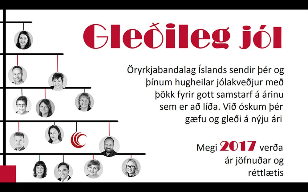 Öryrkjabandalag Íslands sendir landsmönnum öllum hugheilar jólakveðjur með þökk fyrir árið sem er að líða. Við óskum landsmönnum gæfu og gleði á nýju ári. Megi 2017 verða ár réttlætis og jöfnuðar.