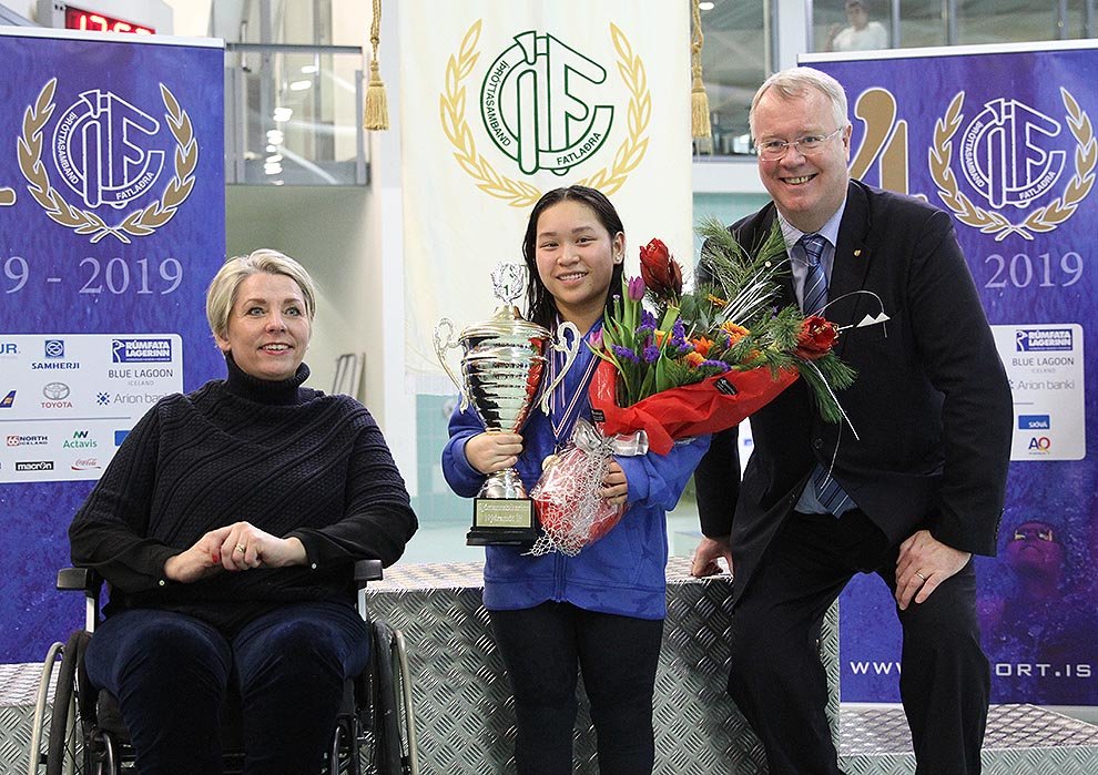 Þuríður Hapra Sigurðardóttir formaður Öryrkjabandalags Íslands var heiðursgestur við mótið, og sá um að veita keppendum þátttökuverðlaun og afhenti Sjómannabikarinn í lokin ásamt Þórði Árna Hjaltested formanni ÍF.