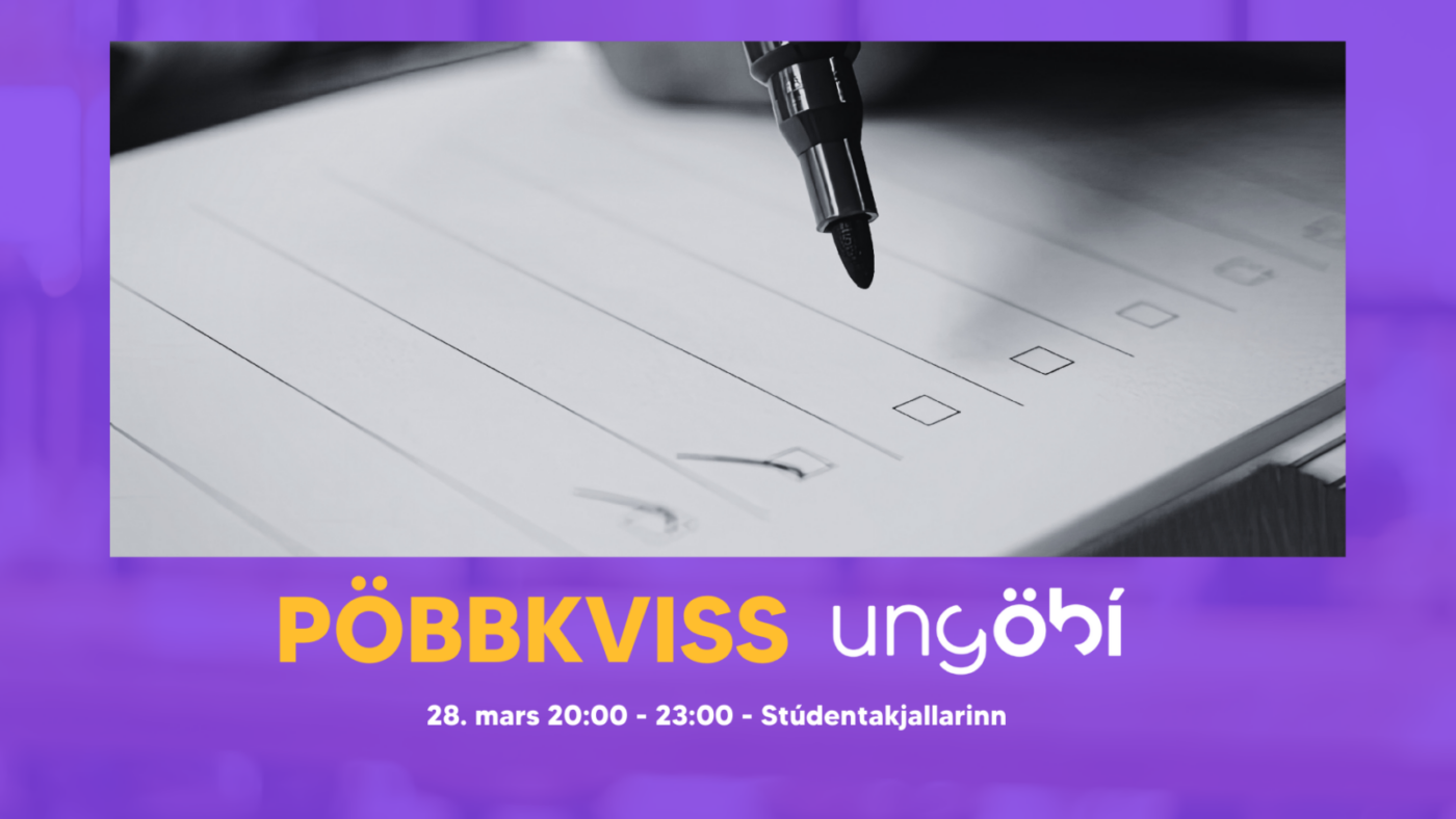 UngÖBÍ bíður ungu fólki á aldrinum 20-35 ára í pöbbkviss í Stúdentakjallaranum laugardaginn 28. mars kl. 20:00 Snillingarnir í Pubquizplebbunum ætla að stjórna fjörinu og verðlaun verða veitt fyrir fyrsta...