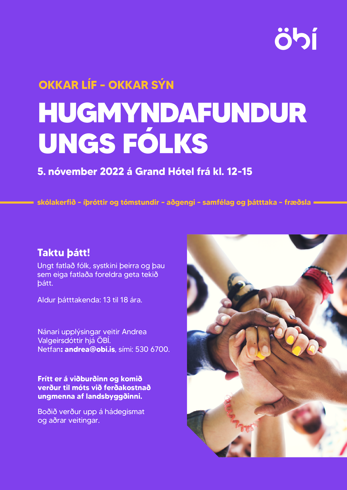 Málefnahópur ÖBÍ um málefni barna stendur fyrir fundinum. Það er frítt á viðburðinn og komið verður til móts við ferðakostnað ungmenna af landsbyggðinni.