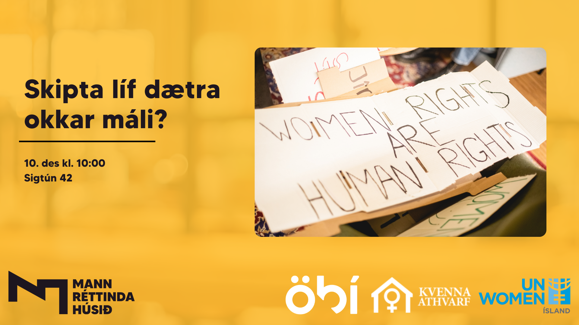 Mannréttindadögum og alþjóðlegu 16 daga átaki gegn kynbundnu ofbeldi líkur þriðjudaginn 10. desember. Af því tilefni ætla ÖBÍ réttindasamtök, UN Women á Íslandi og Kvennaathvarfið að blása til samverustundar í Mannréttindahúsinu.